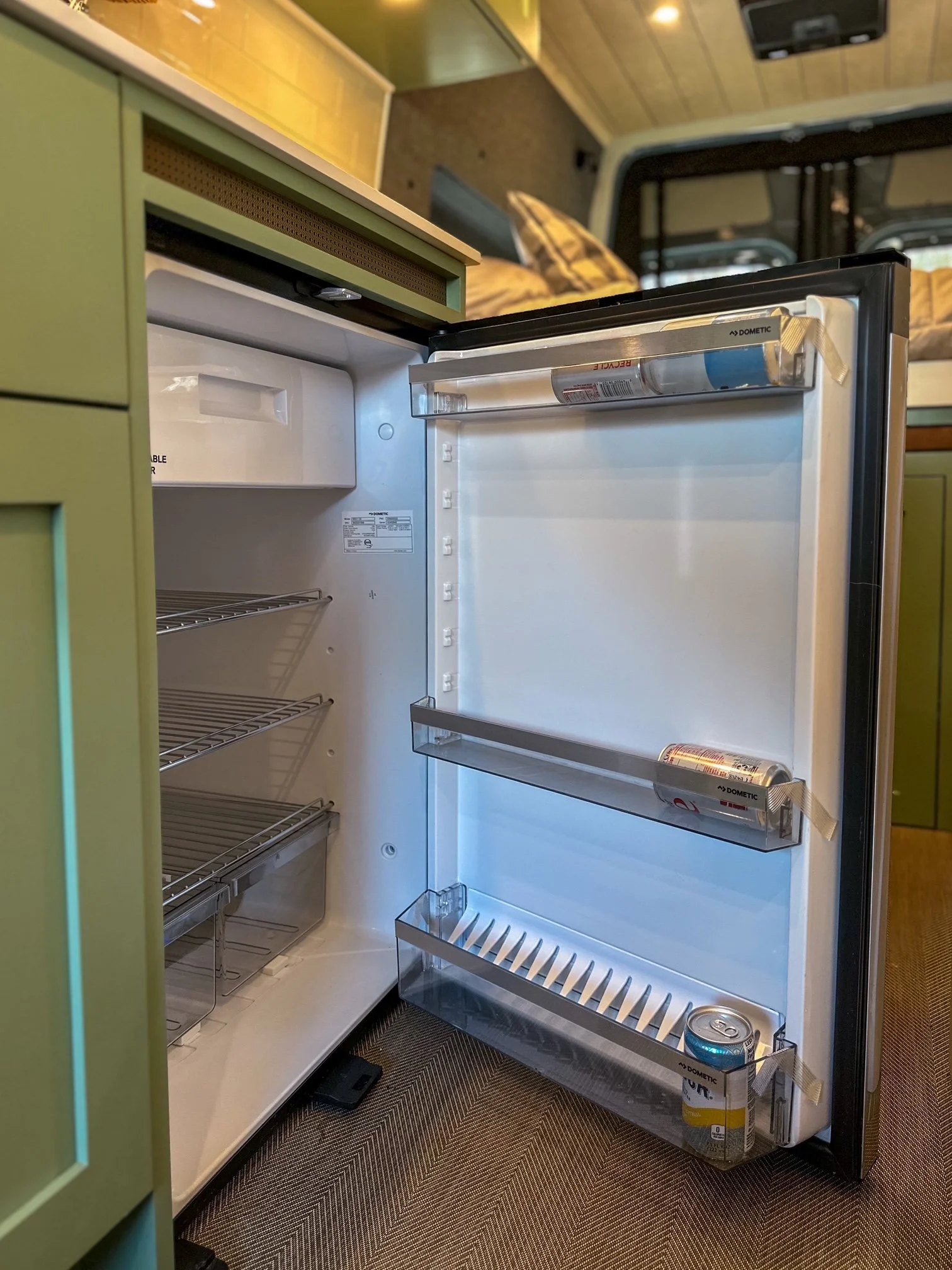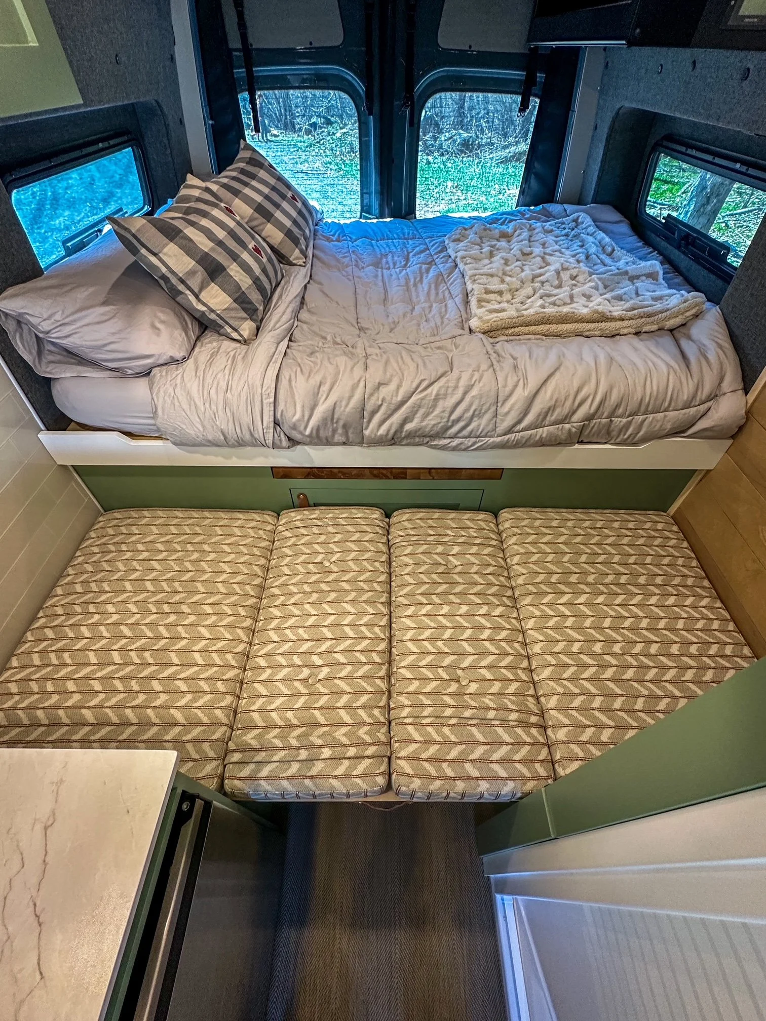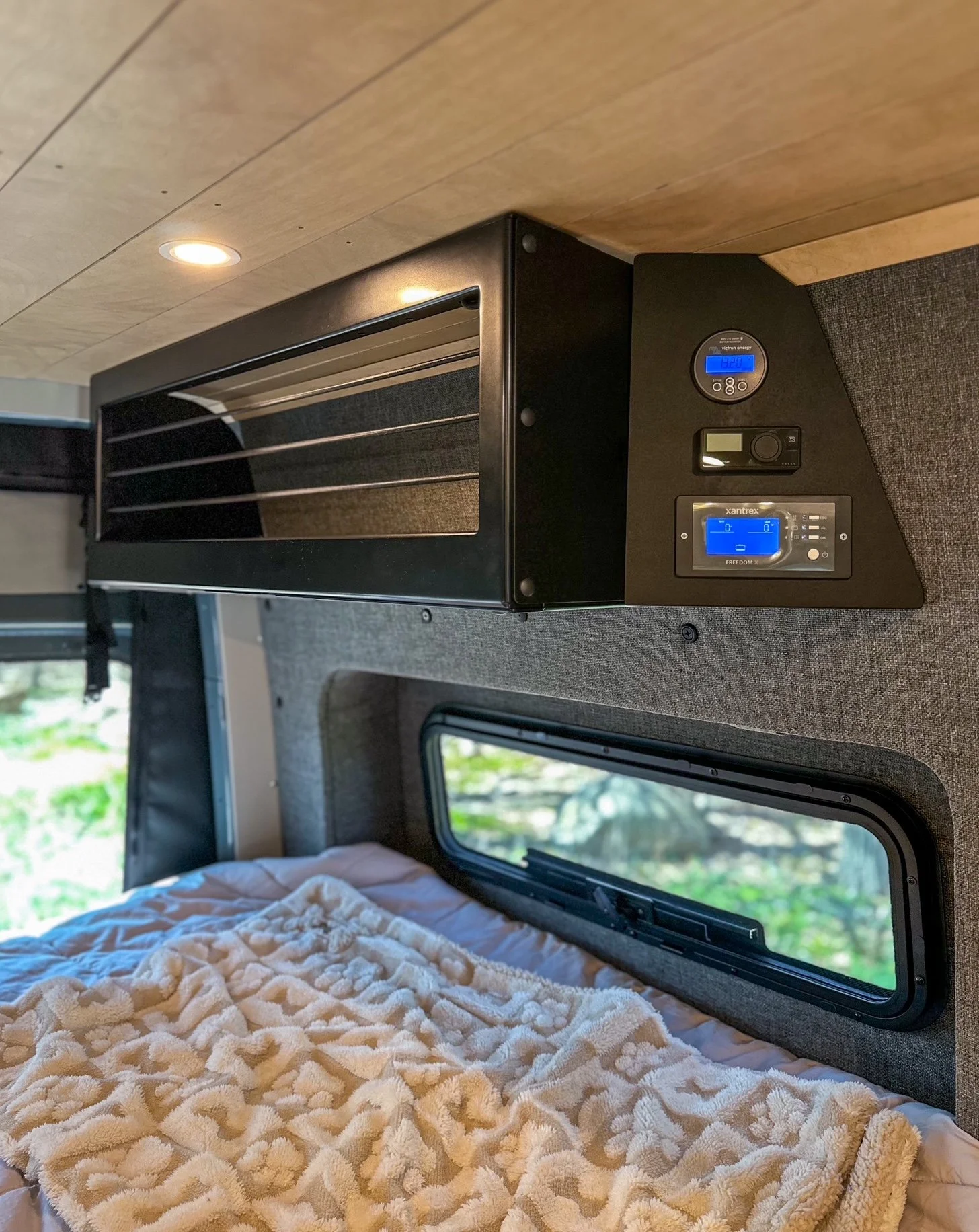 This build was designed from the ground up to support travel with dogs, with durable materials, open floor space, and layout choices that prioritize ease and comfort for both people and pups. Whether parked trailside or heading cross-country, Angela is ready for the ride.