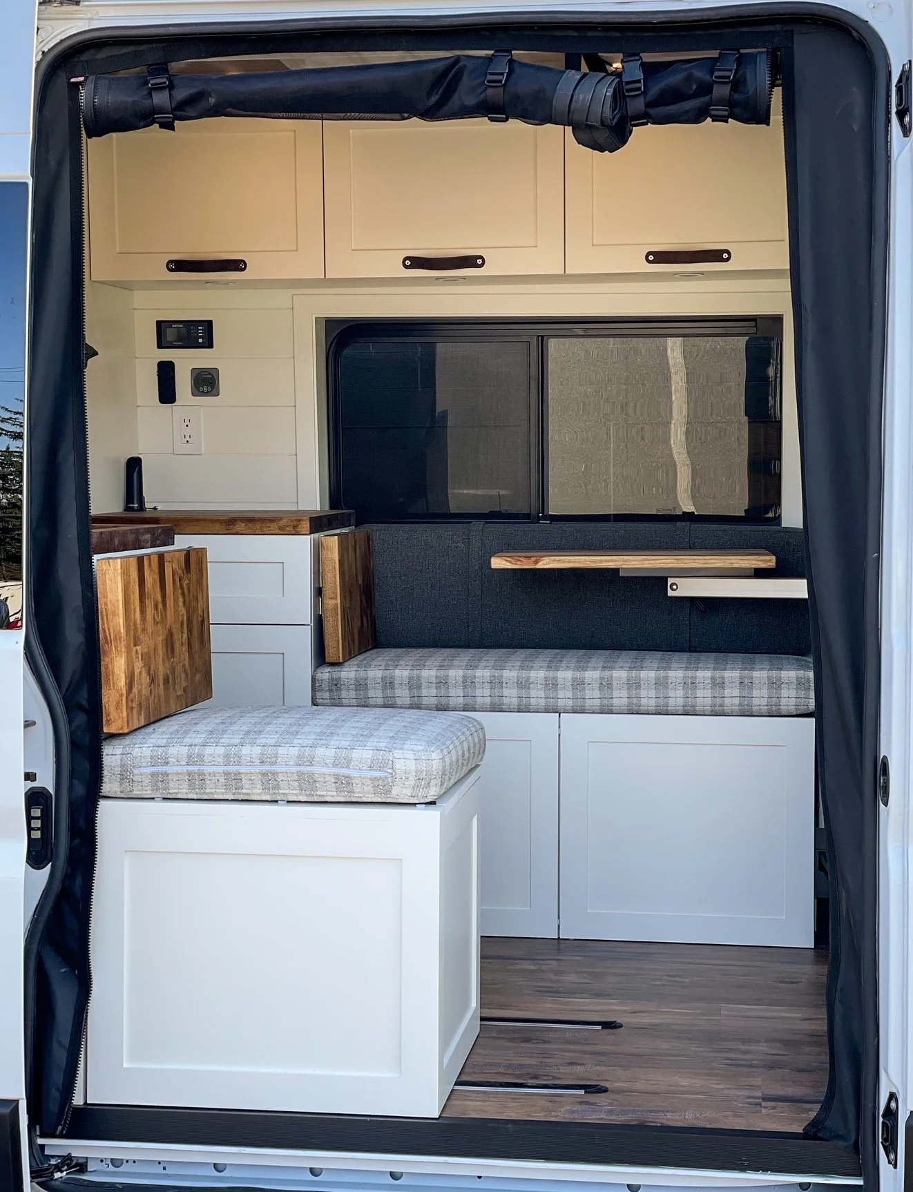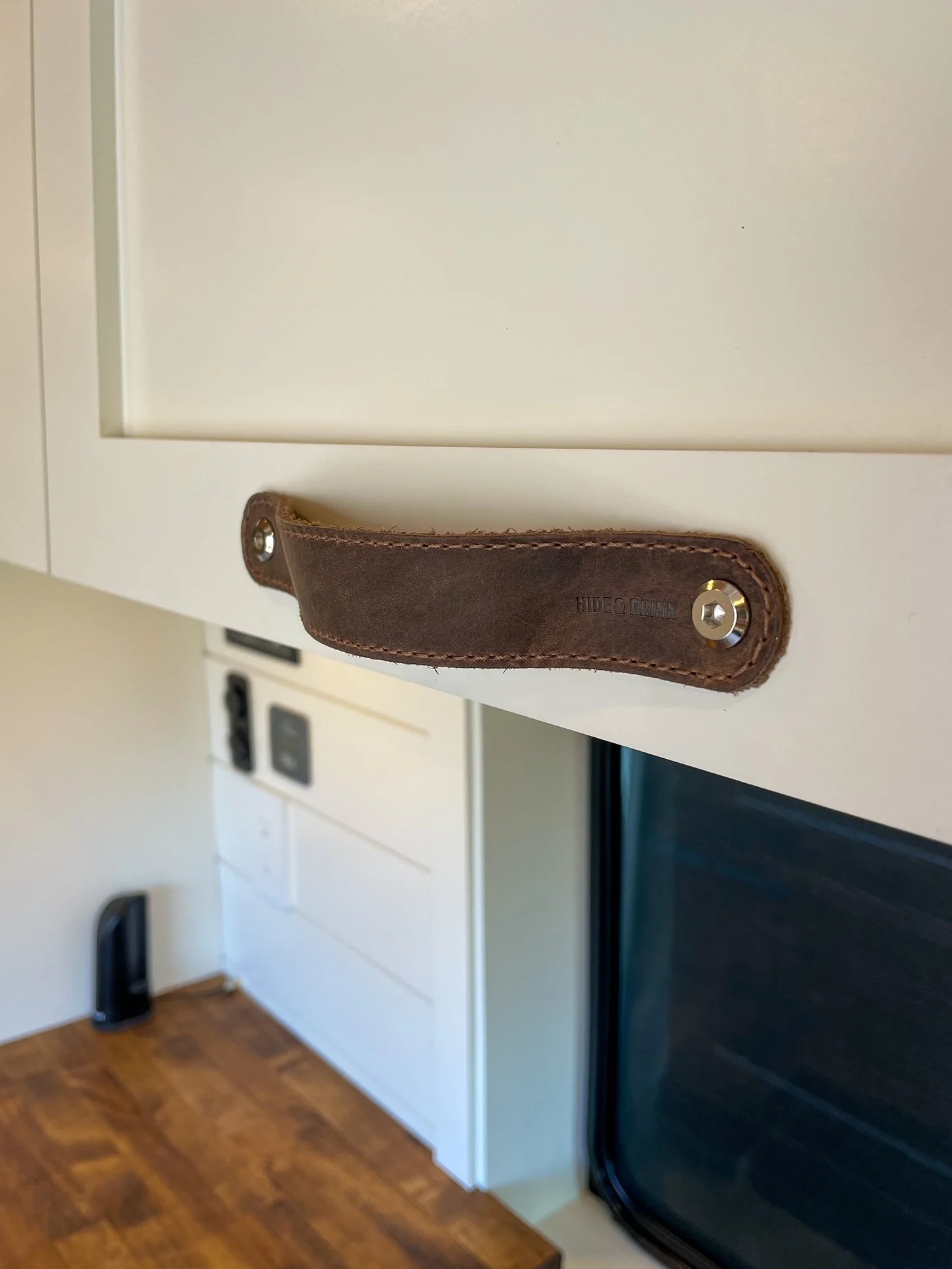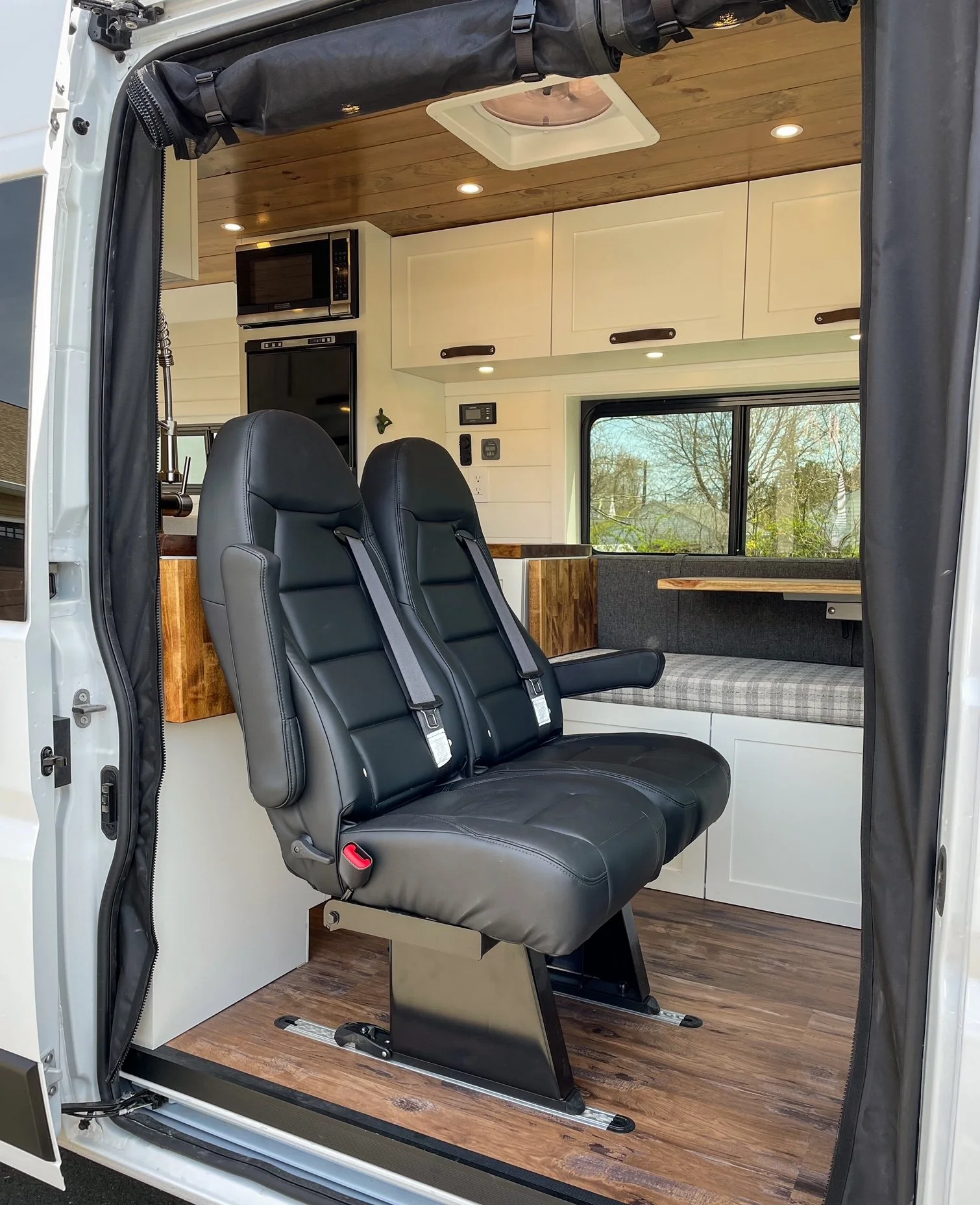 Titan leather upholstered 2 person bench with integrated seat belts and arm rests