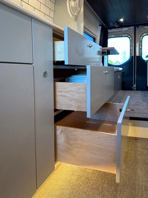 Built for big adventures, Michele and Chet is a fully customized van designed to support life on the move—whether that means chasing snow across the Rockies or soaking up sun on the coast.