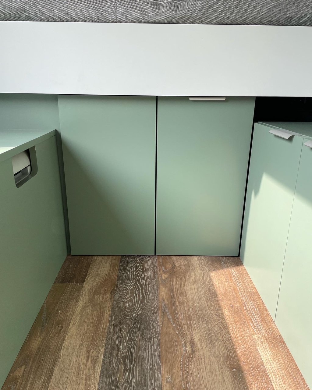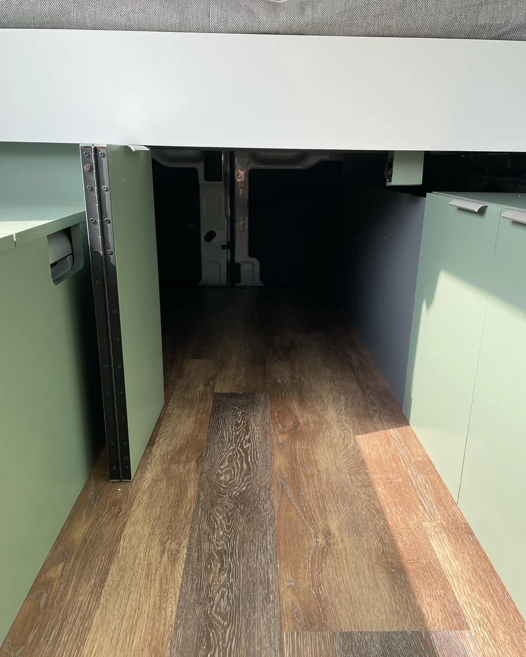 A few older photos are included in the gallery - the interior has the updated green cabinetry. Mattress and all installed components are included in the sale.